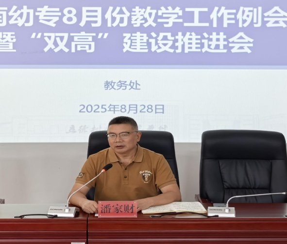 2025828日下午,学校召开8月教学工作例会暨“双高”建设推进会,党委委员、副校长潘家财主持,各系(部)主任、教学秘书、教研室主任、实训室主任及教务处全体人员参会。