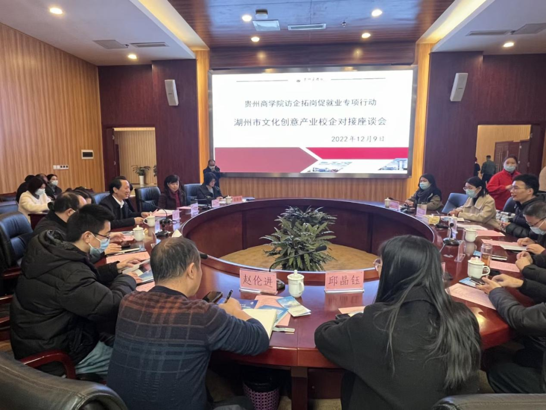 随后举行校企对接座谈会,陈应勇出席座谈会,党委宣传部、教务处、实践教学中心、学生工作部(武装部、学生处、招生就业处)主要负责同志及各二级学院党总支书记参加会议。会上,陈应勇代表学校对湖州市委宣传部卜爱军处长一行的到来表示热烈欢迎,并对我校办学理念、育人目标进行了简单介绍。陈应勇表示湖州的文化创意产业需要的人才与我校部分专业非常契合,学校将根据企业需求,全力提供服务与支持,希望湖州市委宣传部与我校加强沟通对接,建立长期稳定深入的合作关系,带队更多的行业企业来我校招聘。