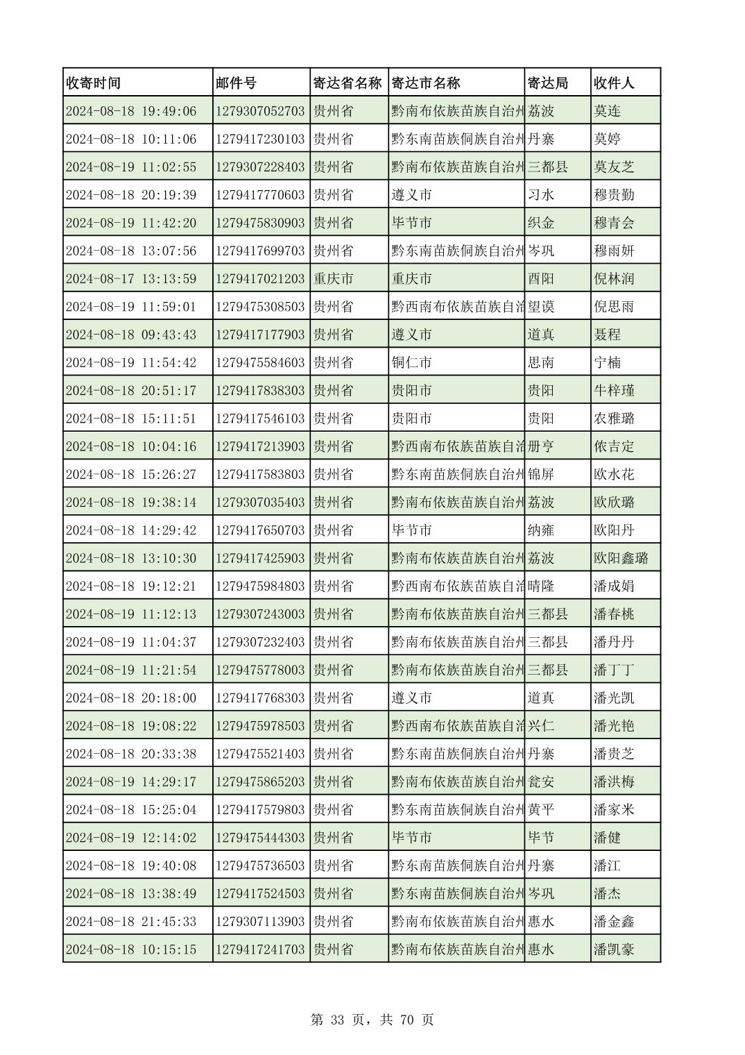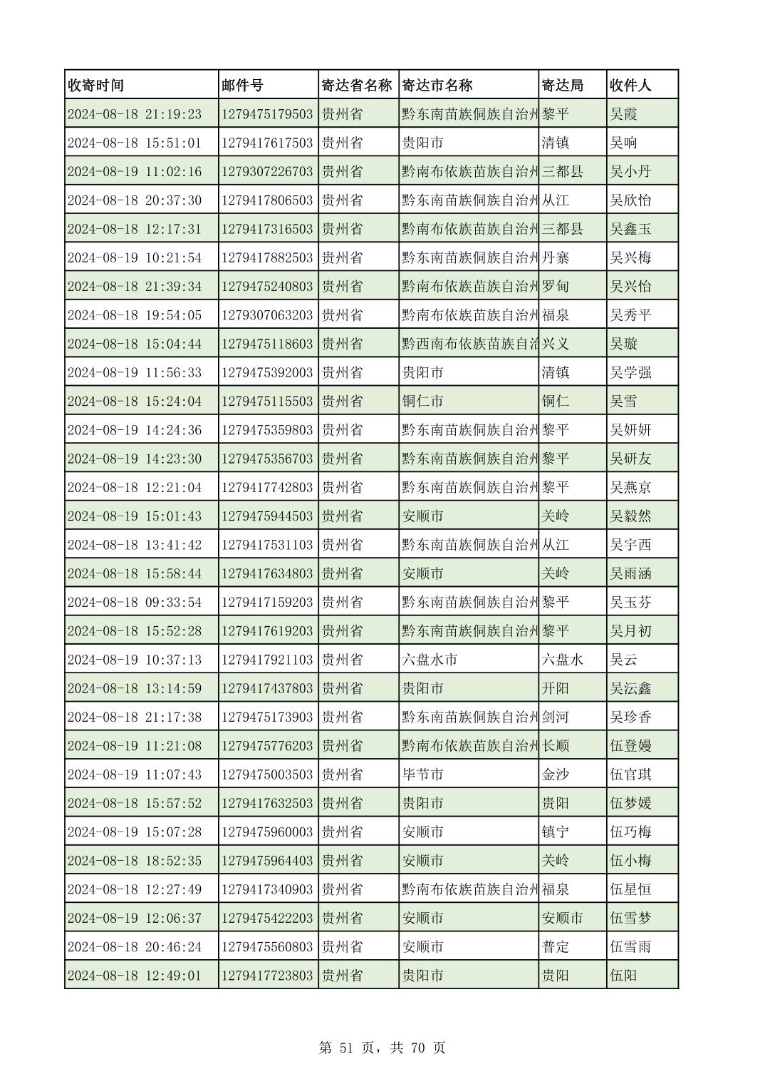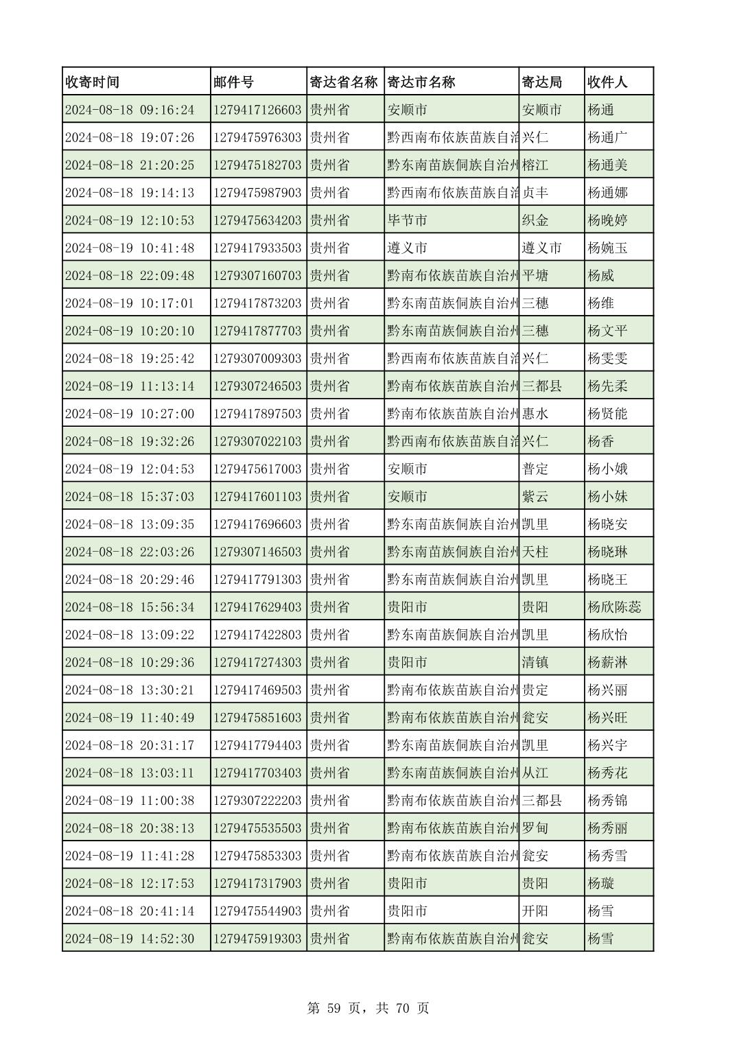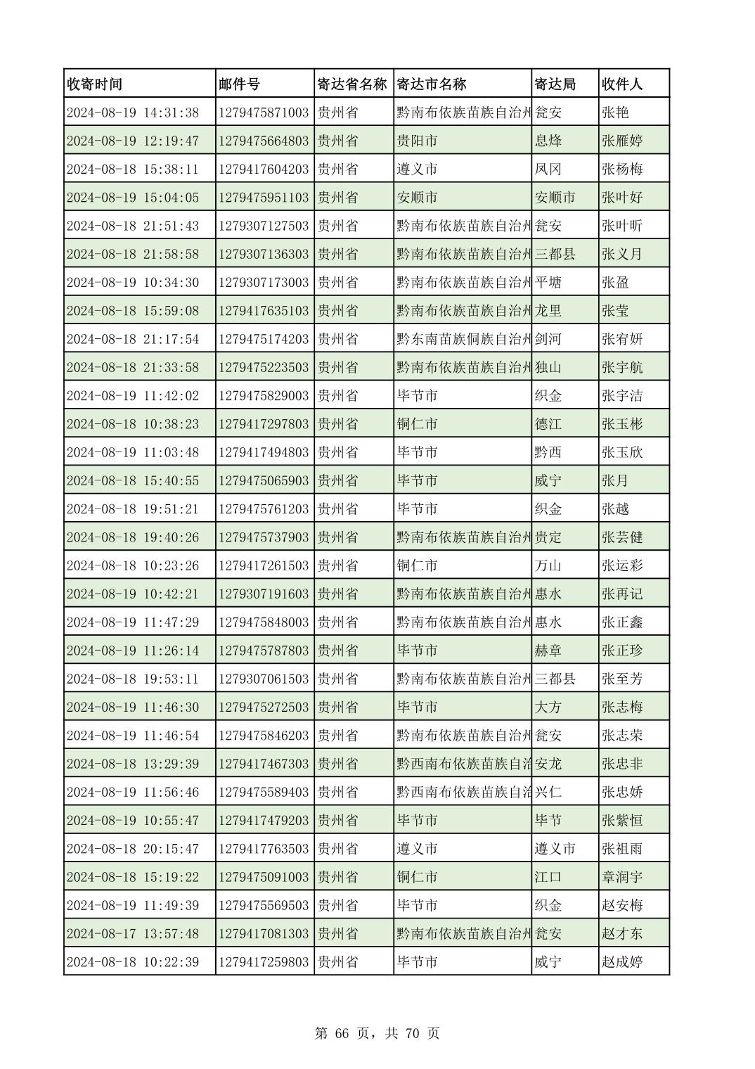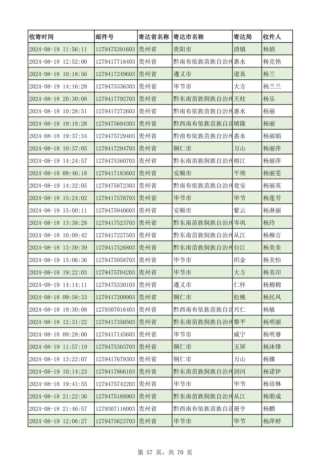 黔南幼专2024年录取通知书邮寄单号8月19日(按姓名拼音首字母排序)