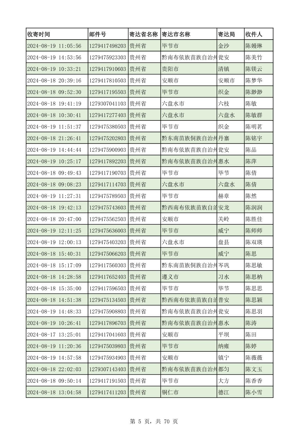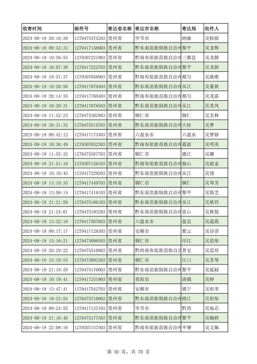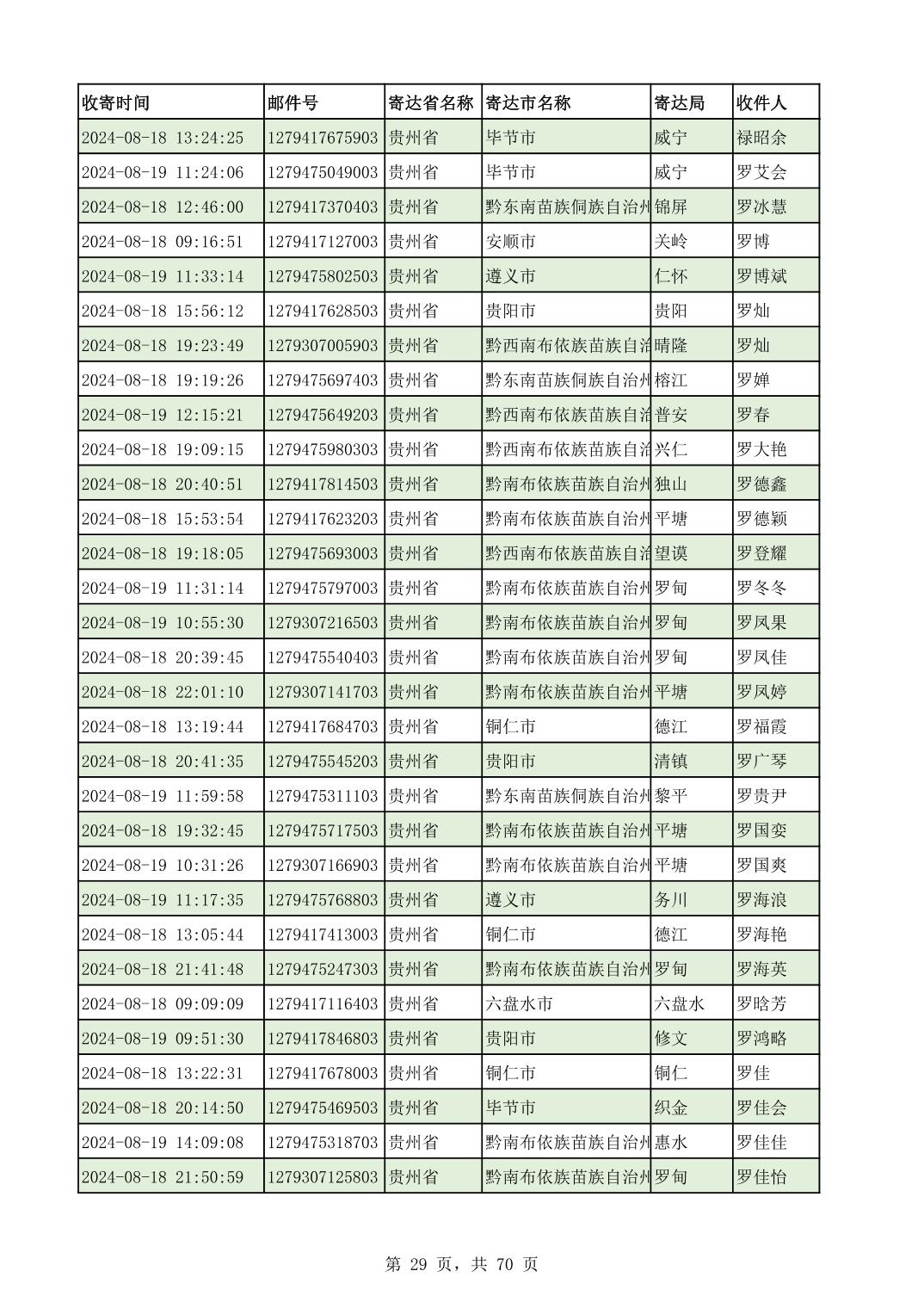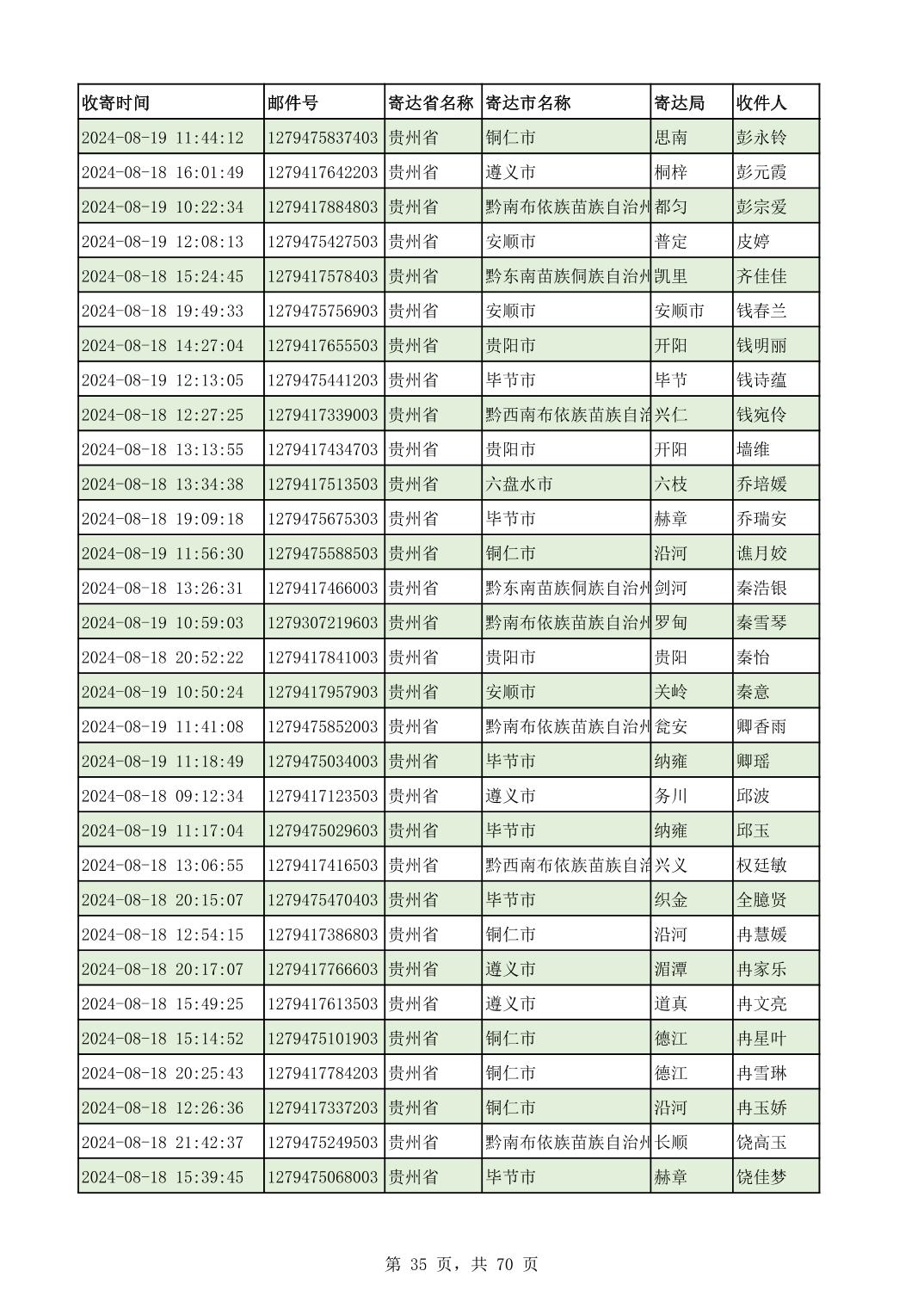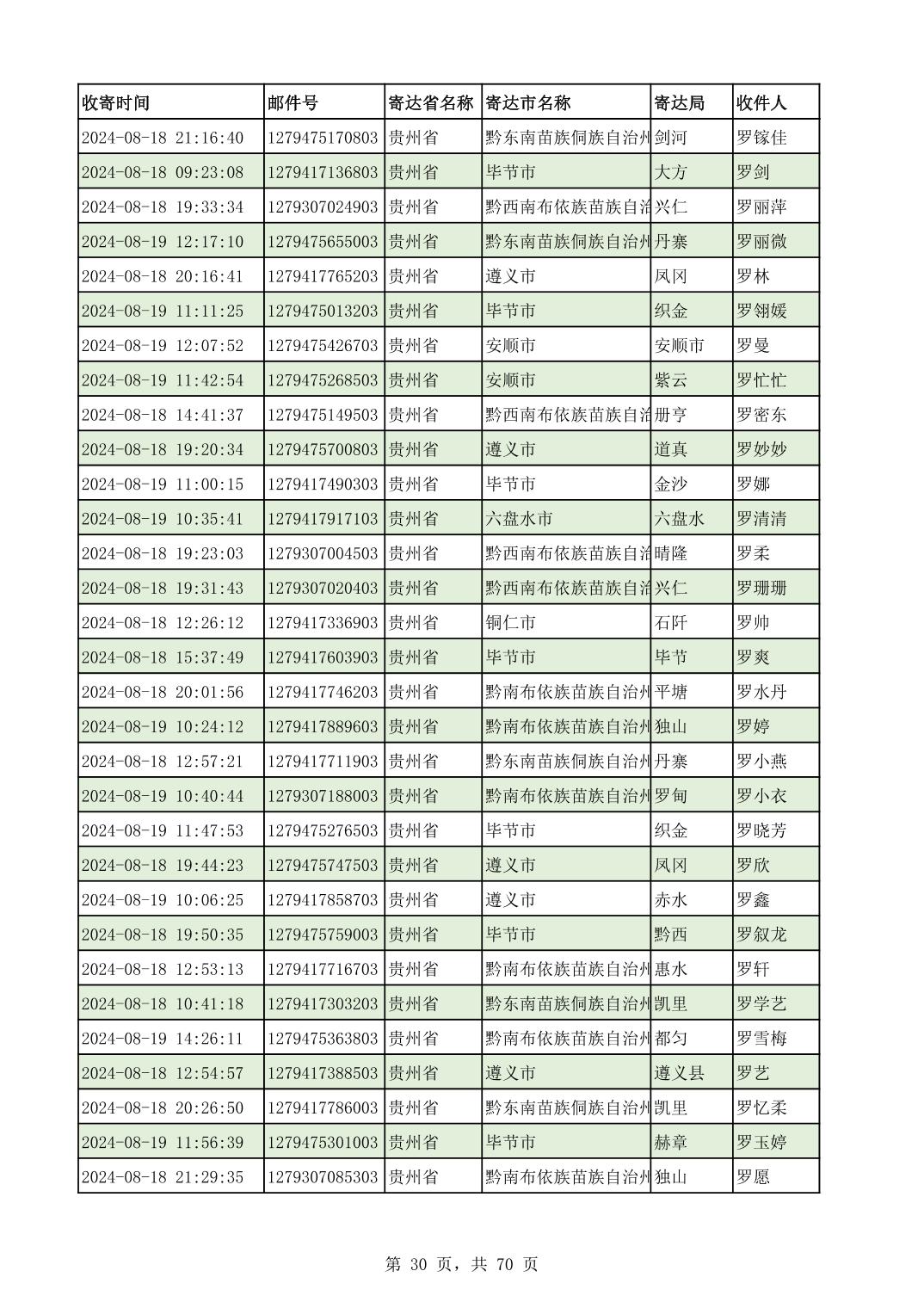 黔南幼专2024年录取通知书邮寄单号8月19日(按姓名拼音首字母排序)