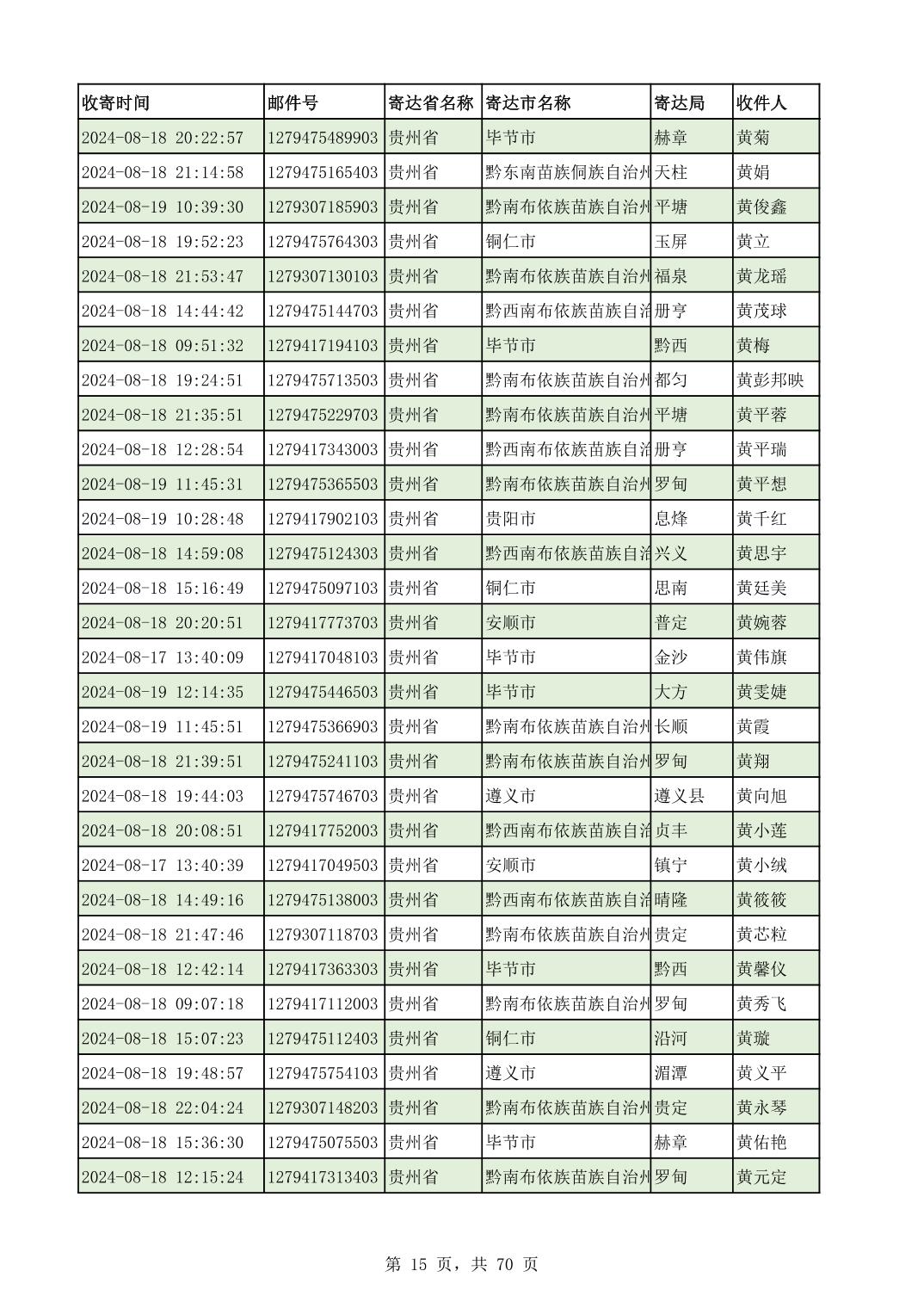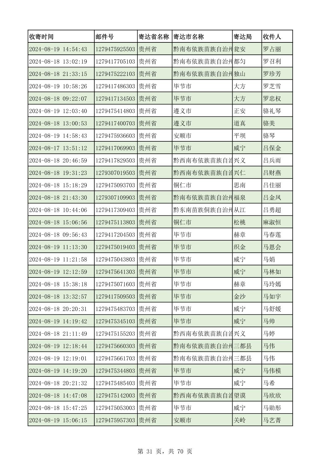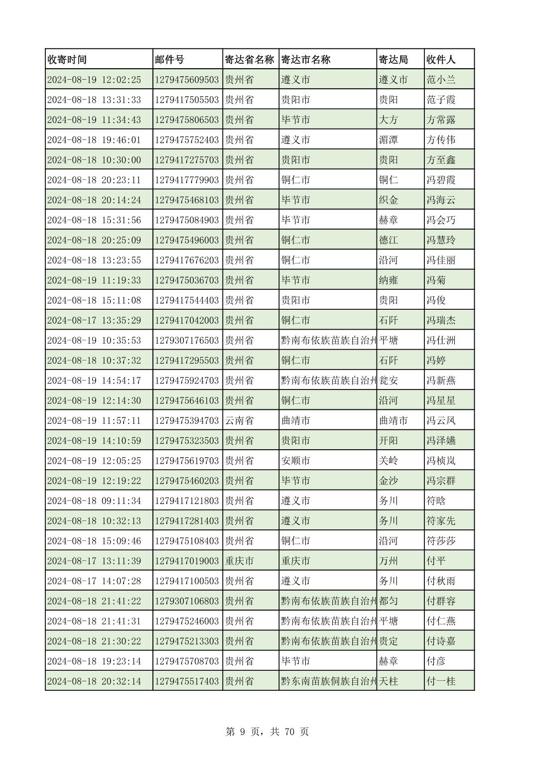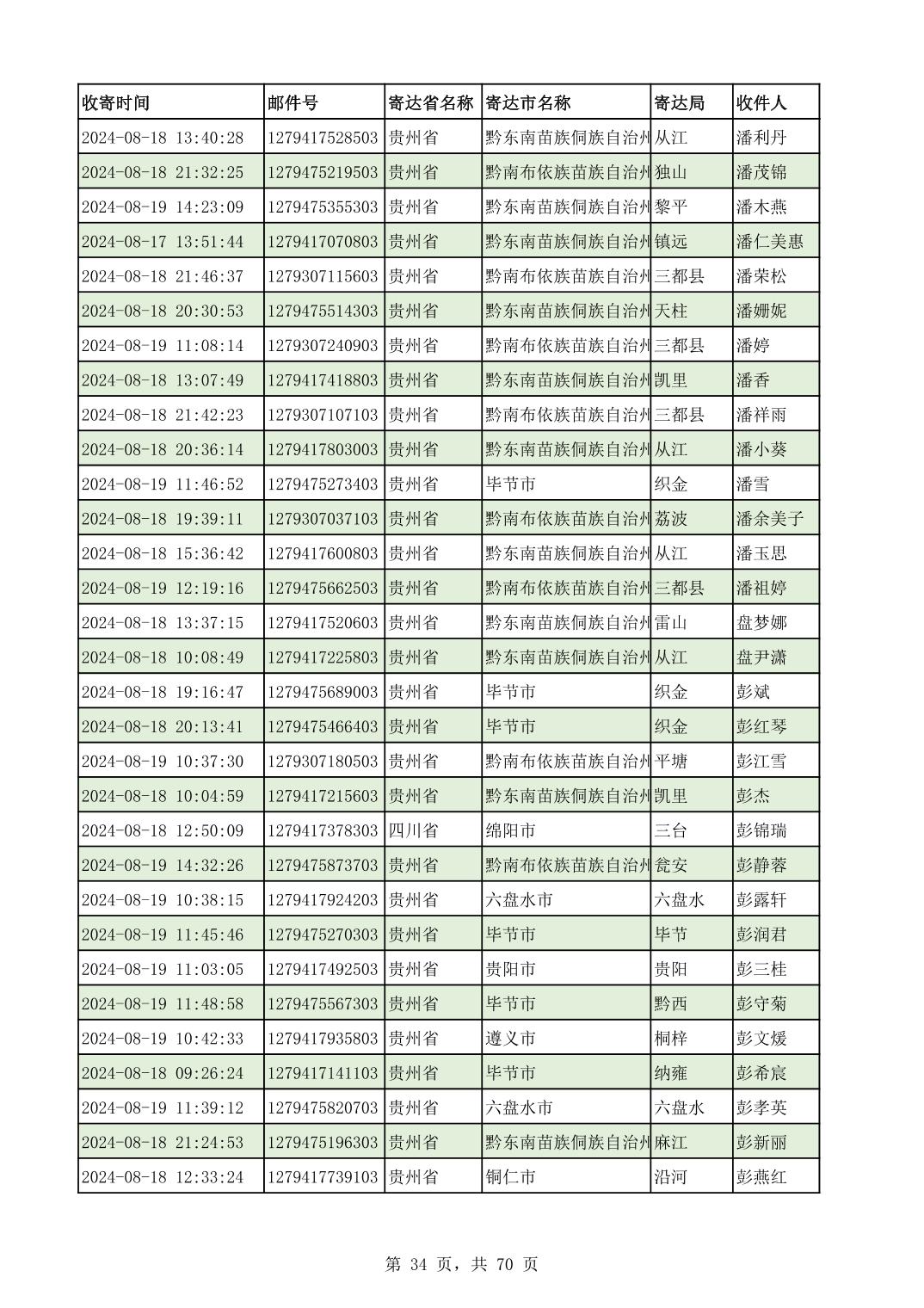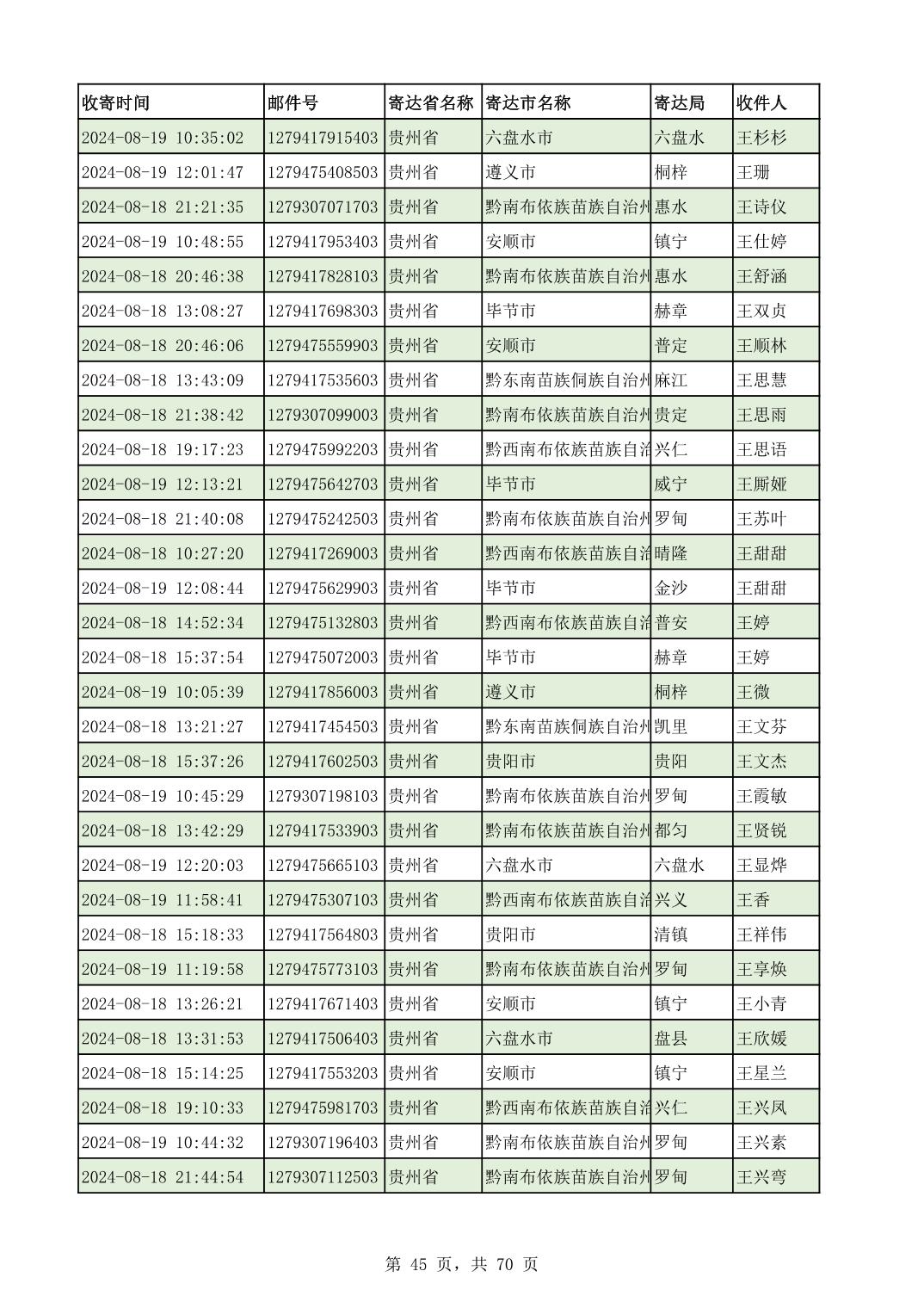 黔南幼专2024年录取通知书邮寄单号8月19日(按姓名拼音首字母排序)