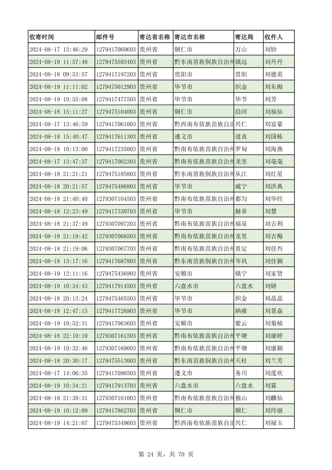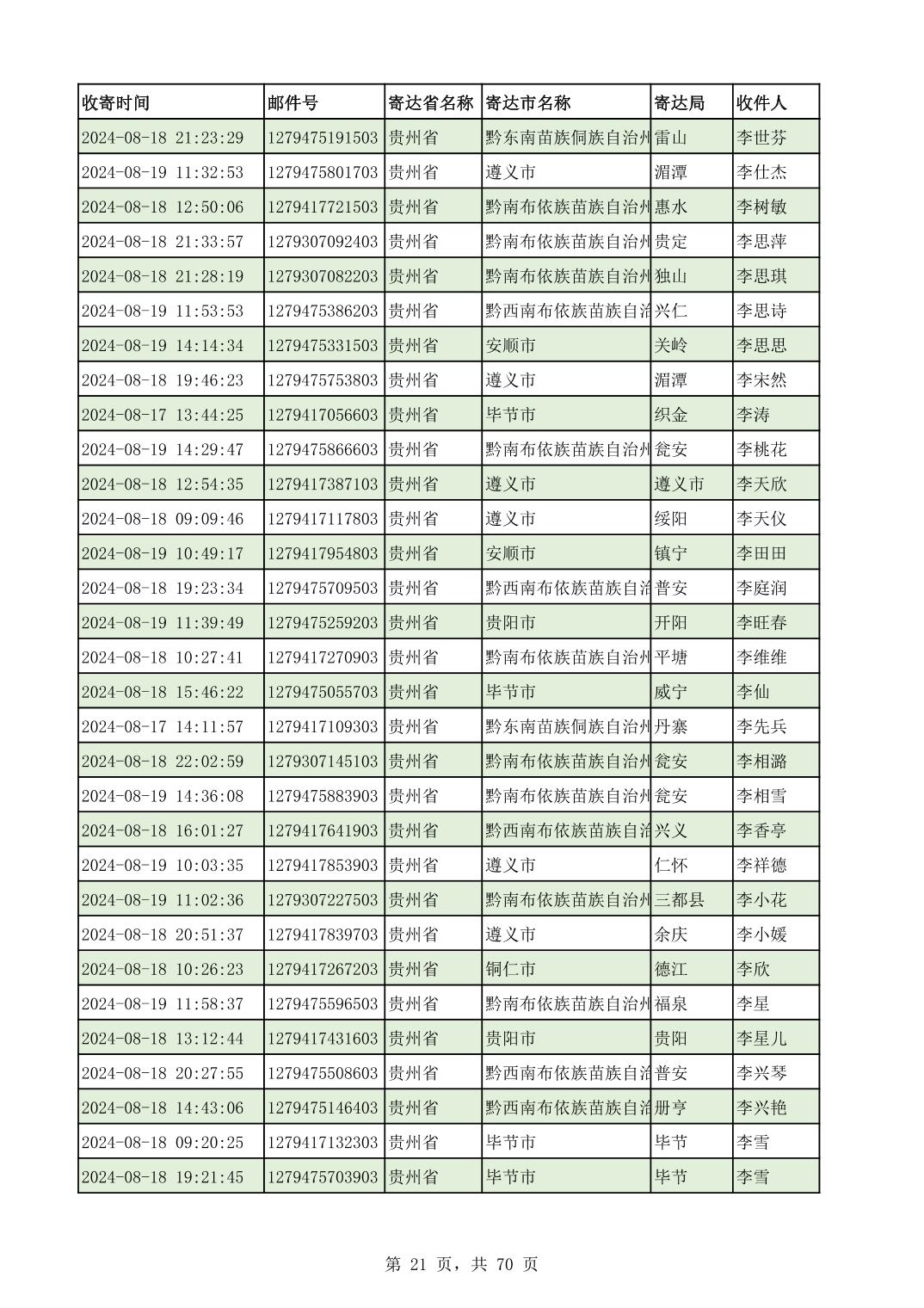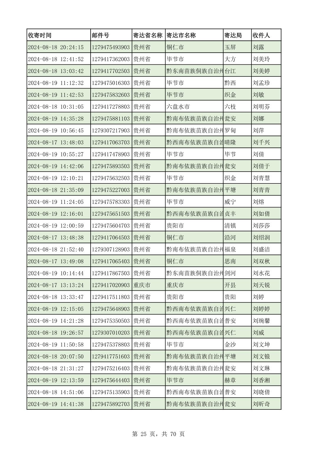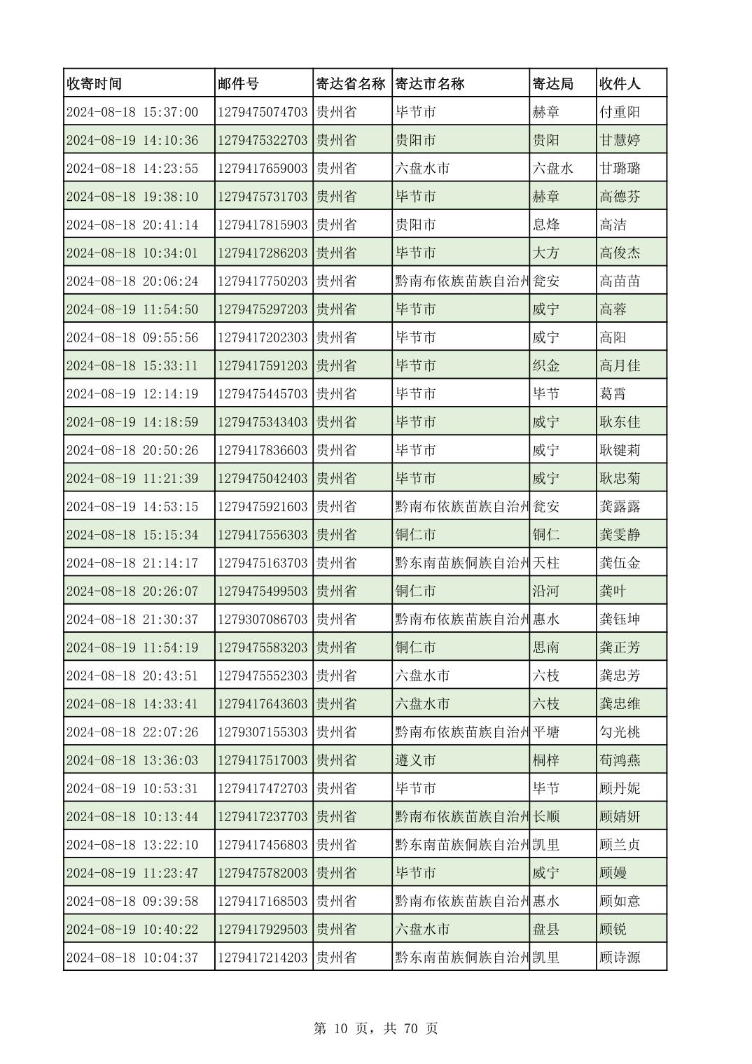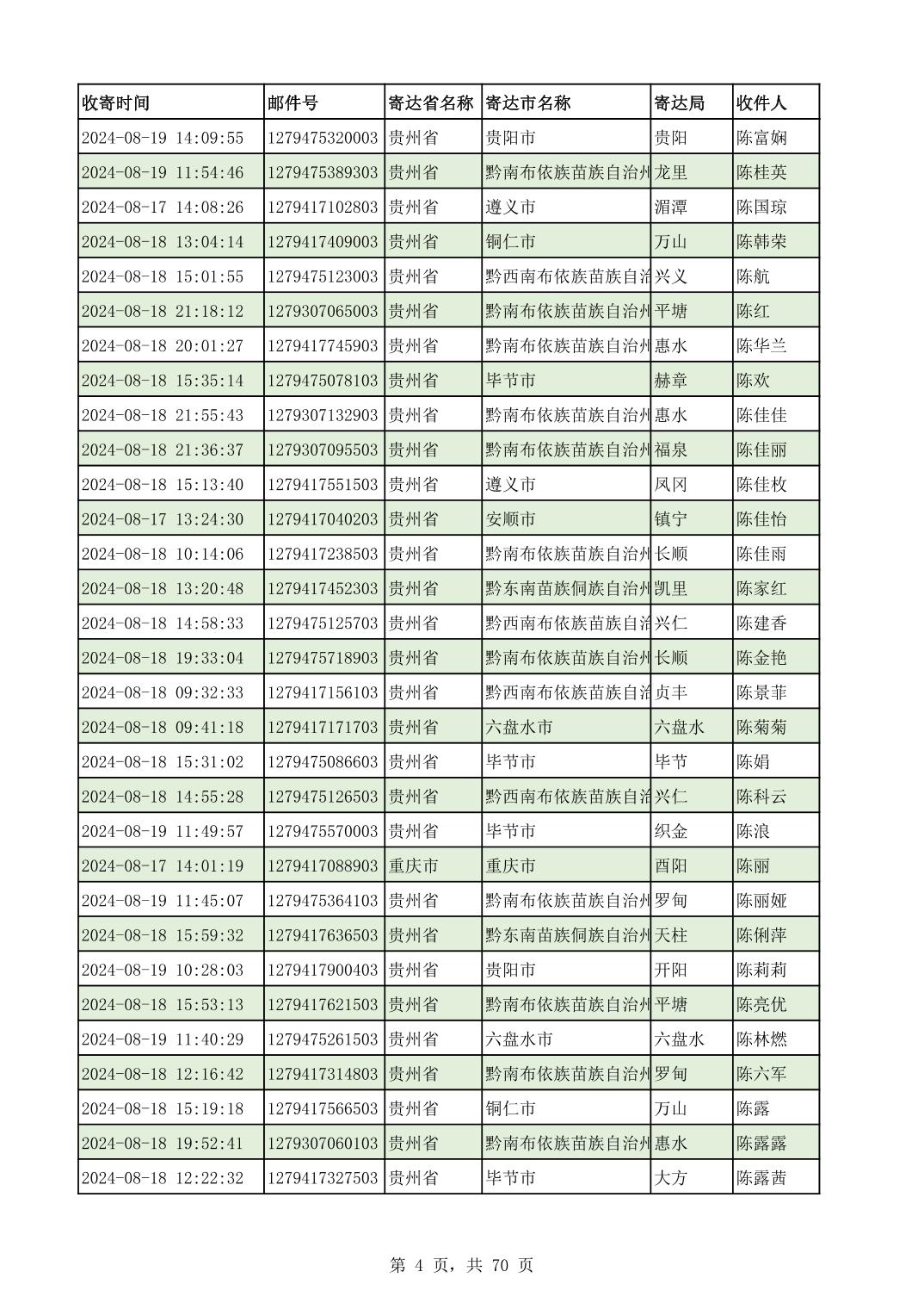 黔南幼专2024年录取通知书邮寄单号8月19日(按姓名拼音首字母排序)