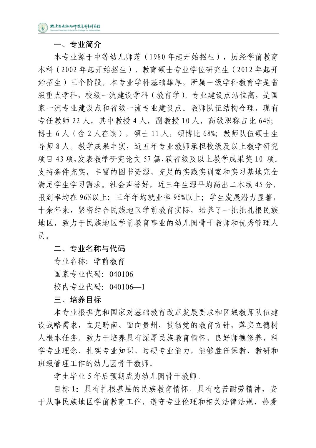 学前教育专业人才培养方案(专升本黔南师院本科2023版